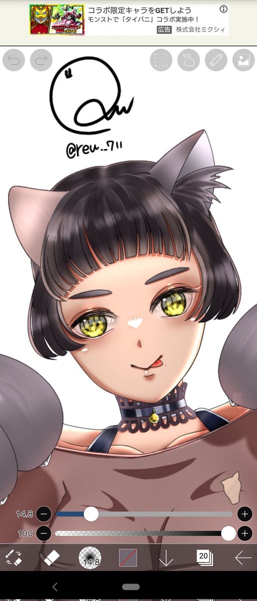耳塗り忘れてた笑 完成形に変わりはありません🤗 #絵描きさんと繫がりたい #イラスト #いいねした人全員フォローする #猫 #にゃん #猫耳 顔かわいすぎるし、口の形変えて正解だったな。◕‿◕。