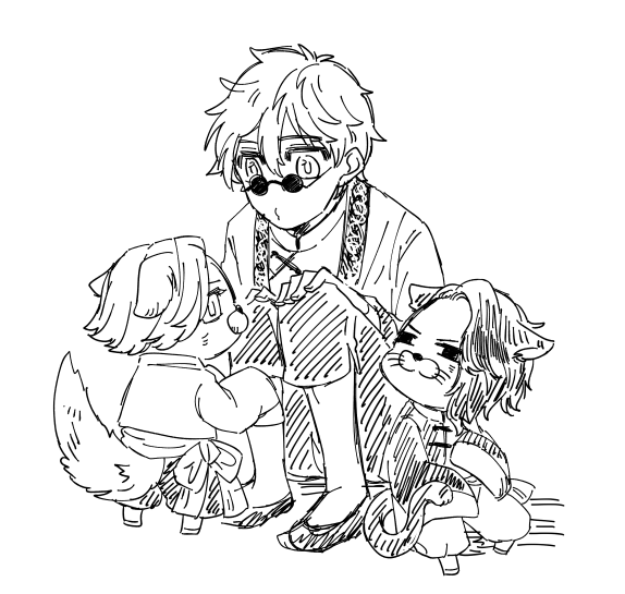 28 190 🌳がうちの🐕🐈って言ったあたりの過去絵みつけて思わず落書き。 BD組は🇨🇳な服が似合う。 23/07/18 00:03