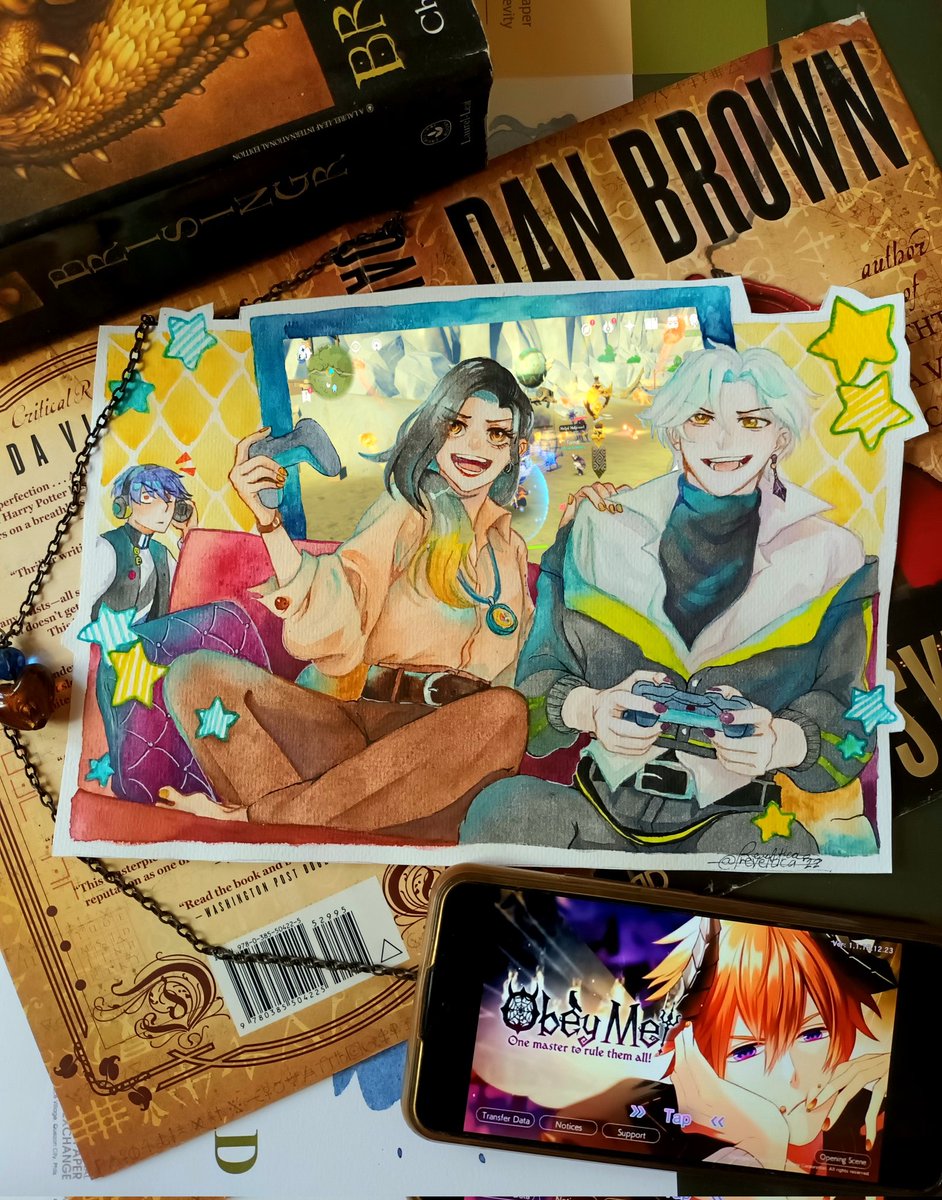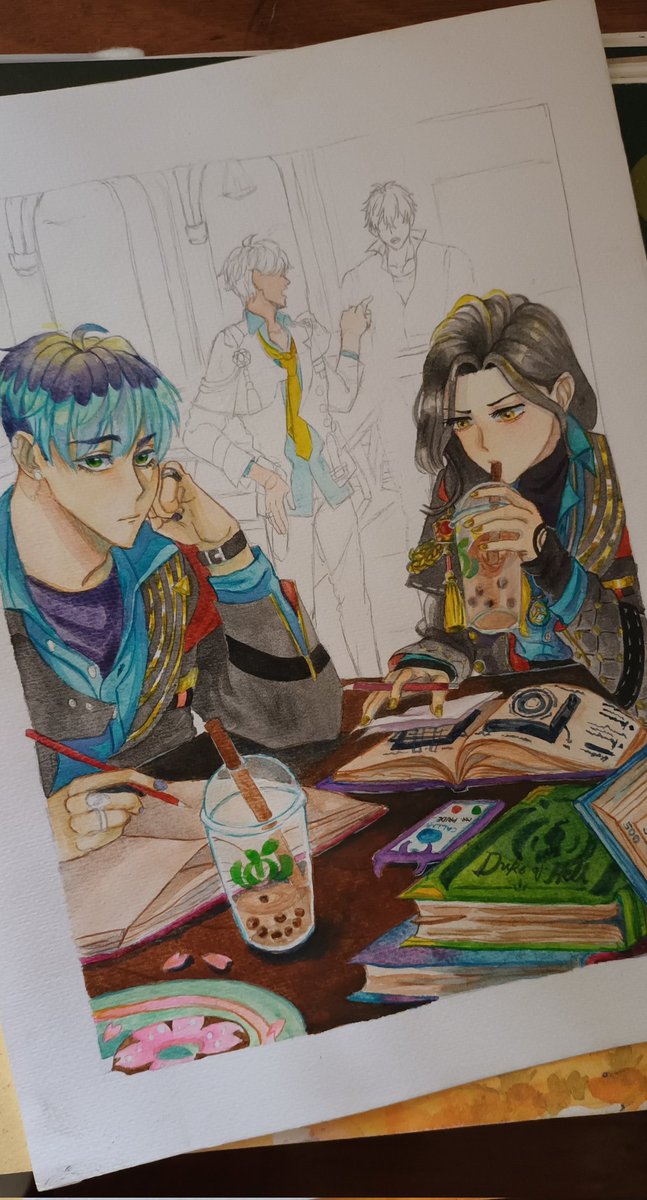 study time ft. milktea ⚜✨ Raven with Miguel ( @mikeyboheart ) #obeyme #obeymefanart #obeymemc #ObeyMeMammon #ObeyMeBeelzebub #art #watercolor #illustration