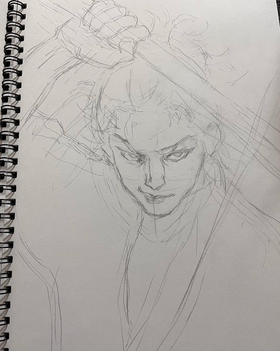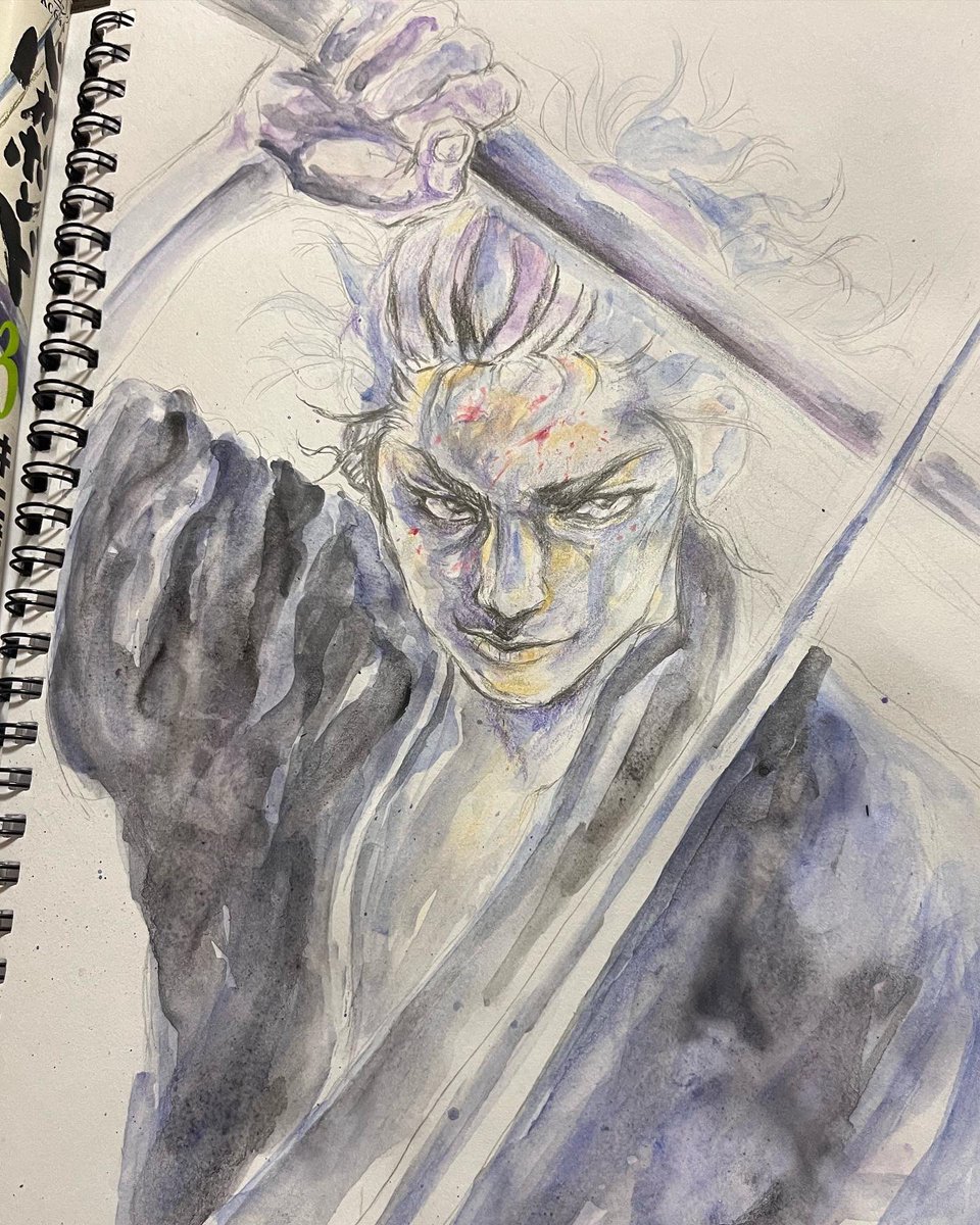 3 8 本垢に投稿したバガボンドの武蔵 あんま下書きせず描いてます #模写 #アナログ絵 23/07/13 19:35