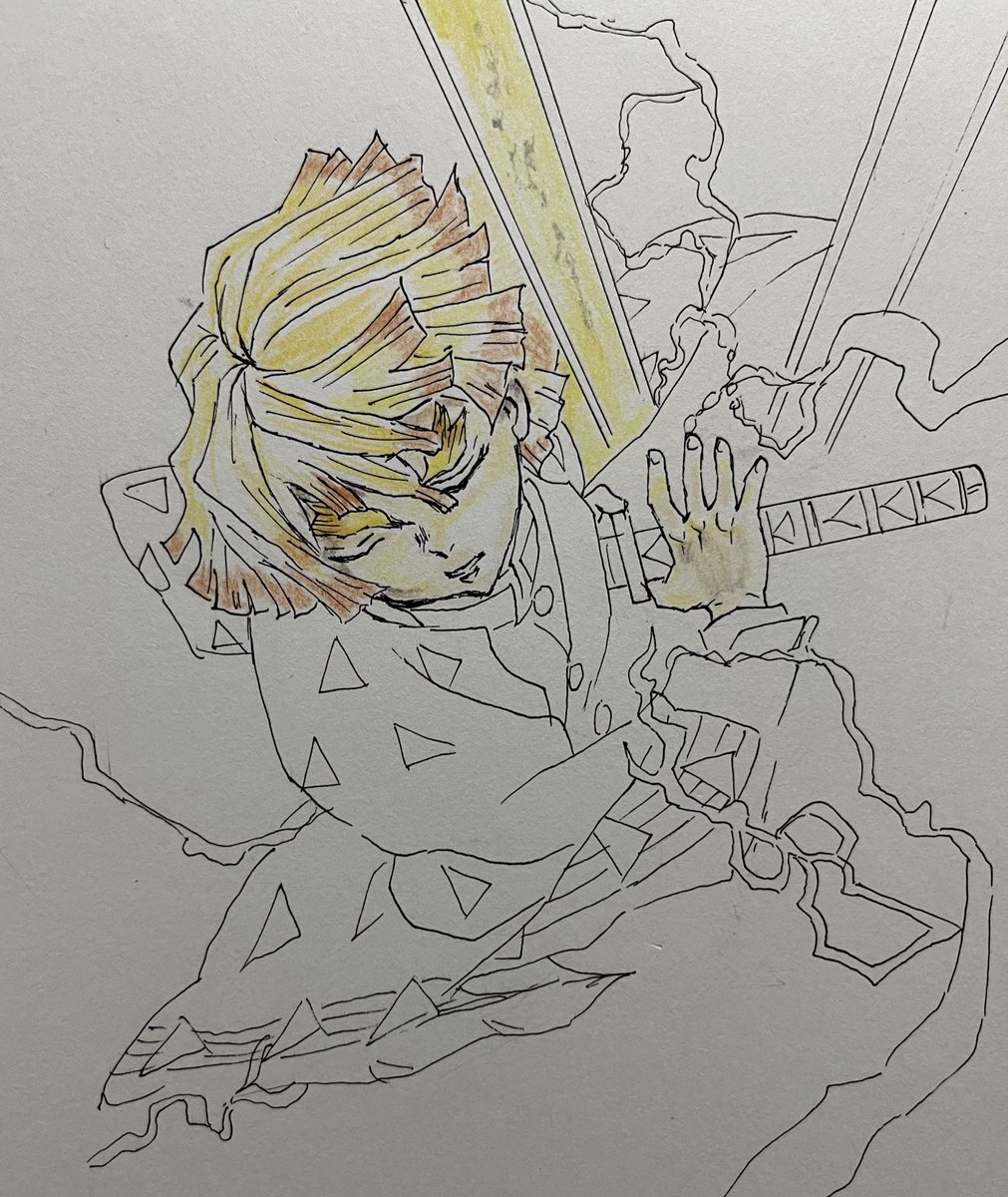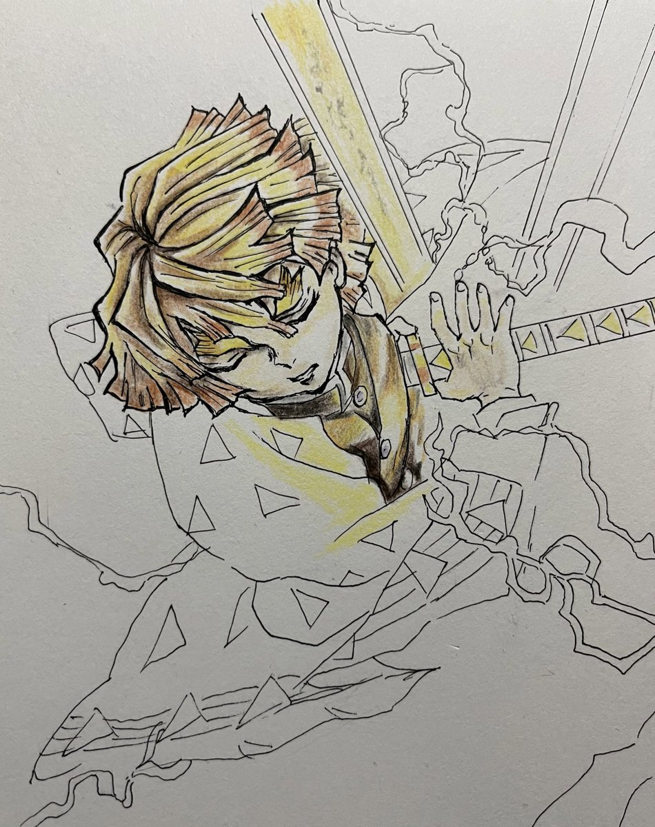 バースデー用の善逸くんを描こう。メイキング。 私が力尽き、集中を欠いて諦めるまでの経過です😂 ほんとはもっと描きこむ予定だったんです。 #模写 #我妻善逸誕生祭2022