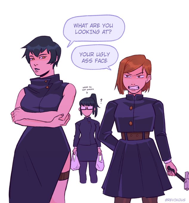 135 471 when you're hanging out with two idiots who hate each other #jjk #jjkfanart #nobamai 21/06/29 15:35