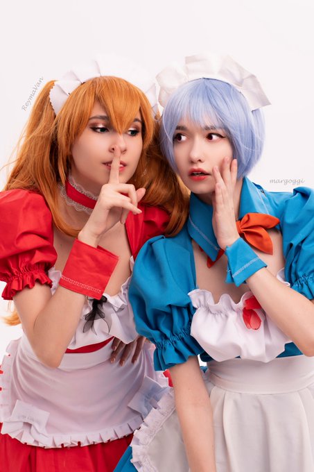 🌷And what am I telling my Ray? Here is a photo for access in social networks. Waited? 🌷 Asuka Langley by ReymaVan Rei Ayanami by @margoggi #cosplay #cosplayergirl #maidoutfit #cosplayer #animecosplay #animefanart