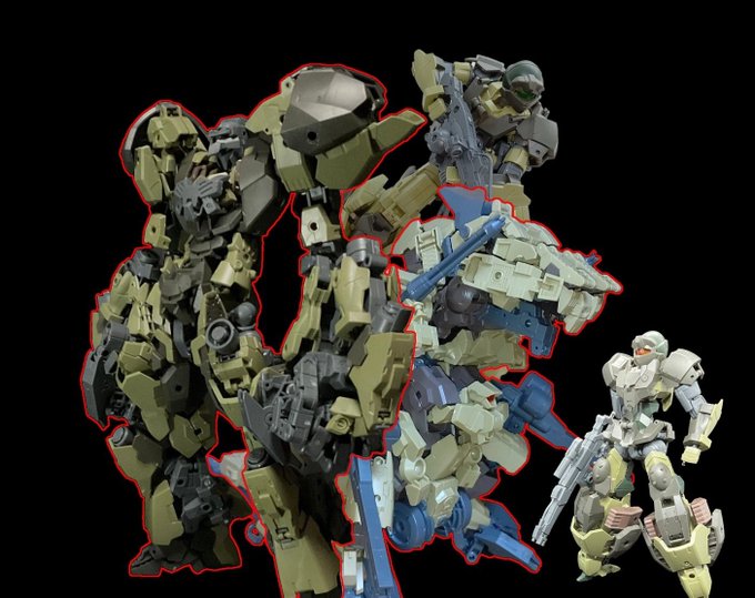 #今年作ったプラモ晒そうぜ #30MM #あなたの好きがつまった作品が見たい 30MSとスパマル分を除けばこれだけ! 公式戦初参加で30MM賞もらえた壱號とローグ、塗装はじめてからのヴェルメリオンとブッチャーという感じの一年でした! あと何故か悪の軍団で参謀になったりしました