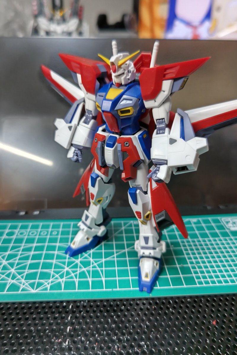 先週の秋葉原工作室の残業がようやく完了。RGのHi-νが組み上がった。しかし後ろが重すぎて思い切り前傾しないと自立できない。買っておいたスタンドを早く組まねば…。 #秋葉原工作室 #ガンプラ #RXー93ーν2