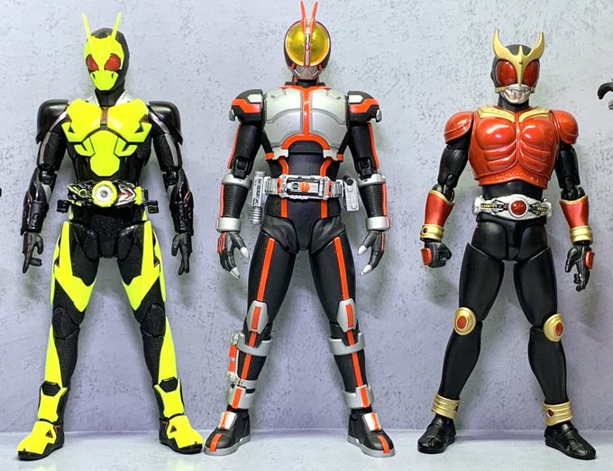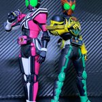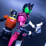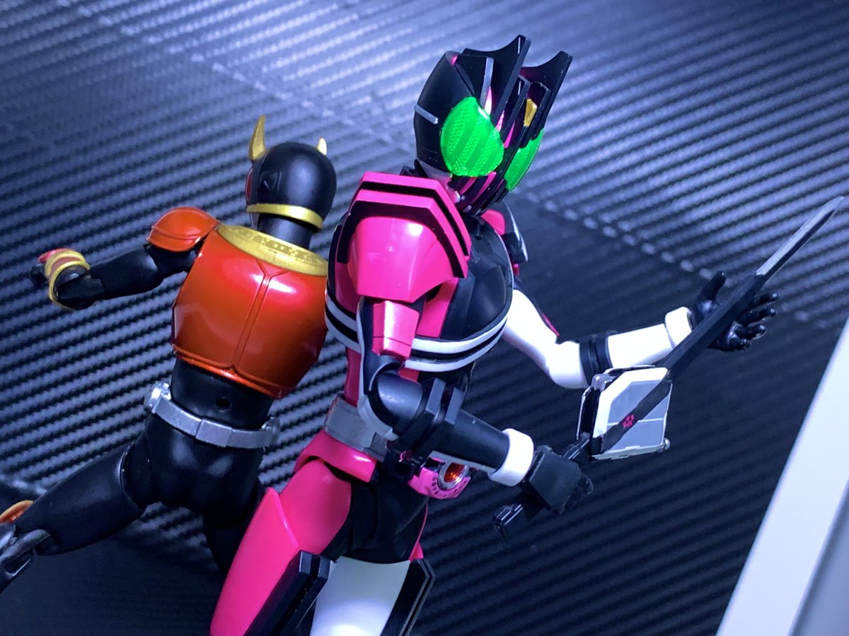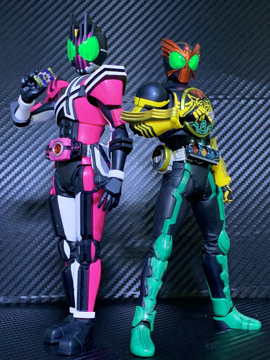フィキュアライズのオーズとディケイド完成 工作はそれぞれわずかな部分塗装と体系微調整、股関節をアーツ風にして隙間ができにくくしつつのニトリル手袋による関節隠しです それぞれ細かくはツリーでつらつらと #フィキュアライズスタンダード