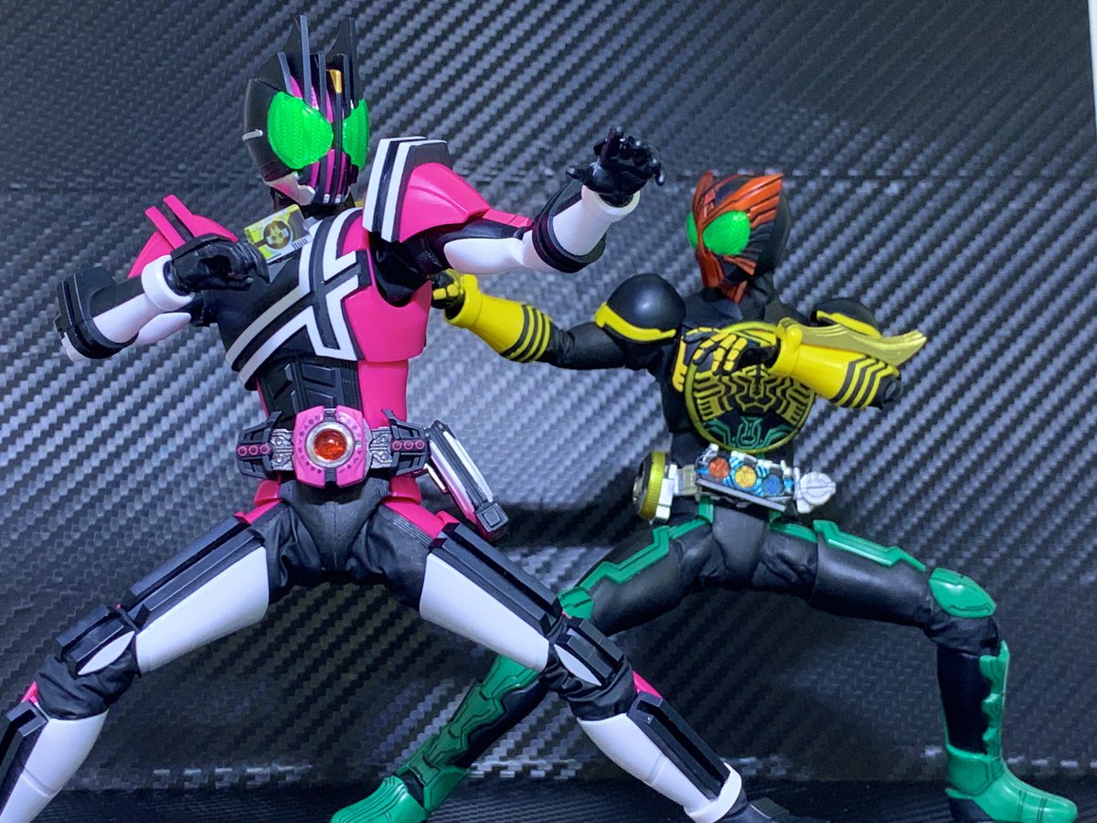 フィギュアライズスタンダードのオーズとディケイド タグ付けついでに再掲 体型調整と股関節のアーツ風改造やニトリルでの関節隠しとかしています詳しくは元ツイで #ニチアサフィギュア改造部 twitter.com/rgm79e/status/…