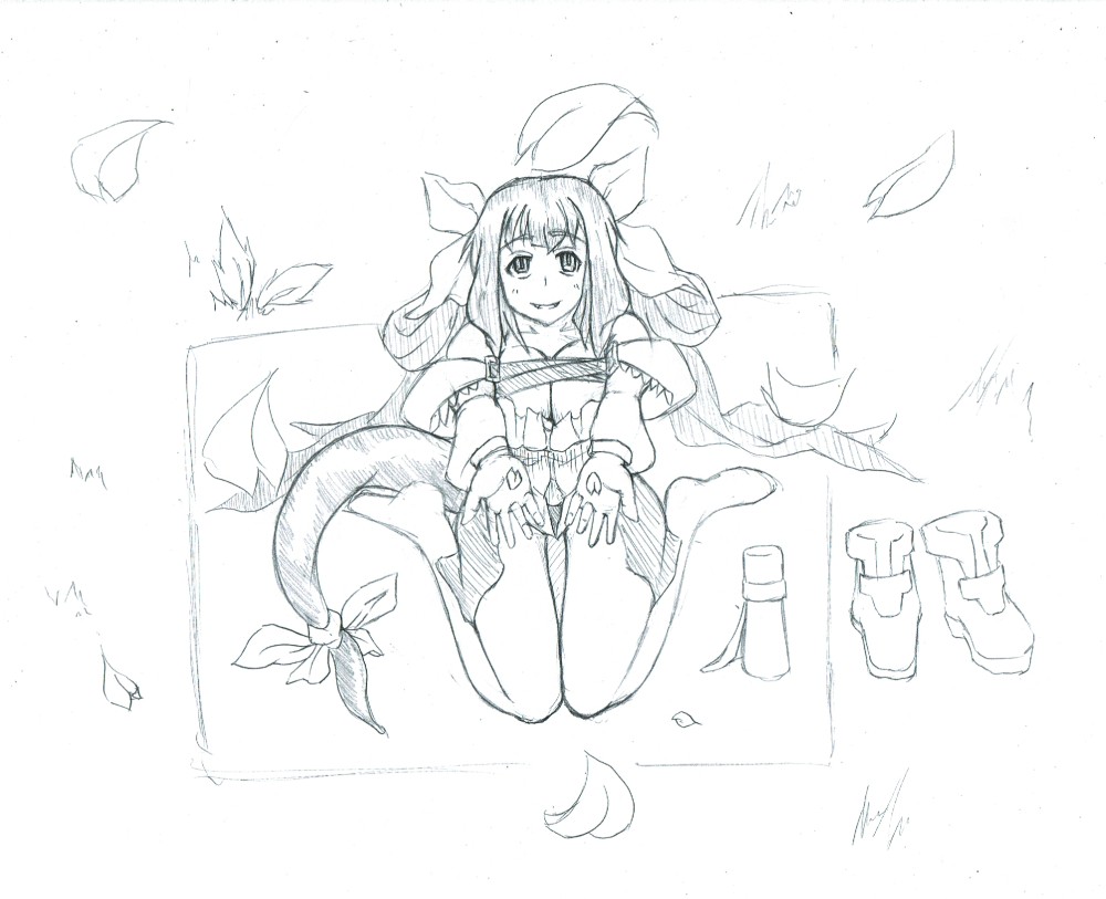 なにやらシャチランジェリーなるものがあるらしいのでディズィーさんに着てもらおう と、ガリガリ描いてたのは良いけどチチシリーすると露骨過ぎるだろうか と思ったので切り貼りする事に。 後で大人しく正面図と後背図で別に描こう・・・ #ディズィーらくがき