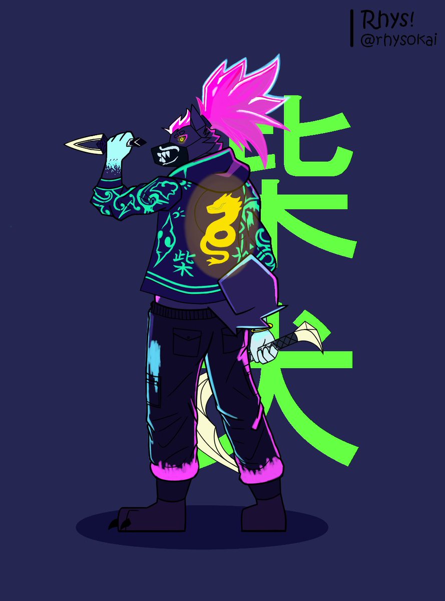 Rhys as Akali | Second version coming next I had a lot of fun drawing this lol (Ps he has no undershirt) #furry #furryartwork