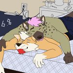 Mhn, im deciding on wall/floor colours (and if the floor should be carpet (blue as seen here) or hardwood (dark brown) The bed sheets made me go GRRRR #furryart