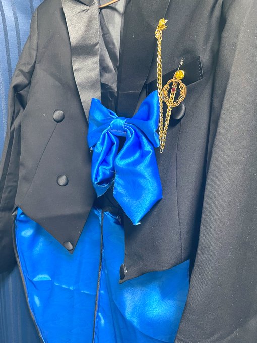 0 3 待ってろよ…壽併せ…… 死に物狂いで衣装(仮)を作って今日はここまででおしまい。 これね、見えにくいけど柄は私が描いた。 描いて布プリントした🤭 リボンも試作品。 思ったより可愛くボリューミーにしてしまったので、ちゃんと作り直します🍀*゜ 燕尾服の布縫うのホントしんど。 腰が!!!! 23/06/16 23:46