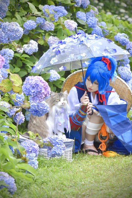 58 386 刀剣乱舞。❀·̩͙꙳。Cosplay ───小夜左文字 ─── .*・゚ .゚一緒に雨宿り🐈🐾.*・゚ .゚ ご縁があり一緒に撮影してくれたラガマフィンの36君です🐈🐾@36muffin_ 23/06/23 19:48