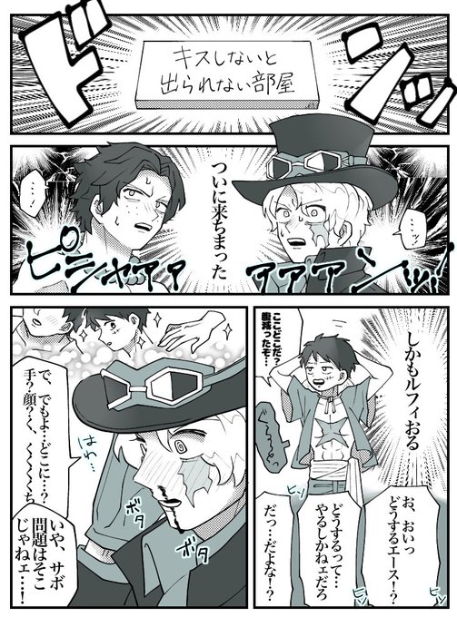 136 1156 キスしないと出られない部屋に閉じ込められたASLL🔥🎩👒🐯 ⚠️腐向け、エール、サボル、ロール 21/06/14 18:35