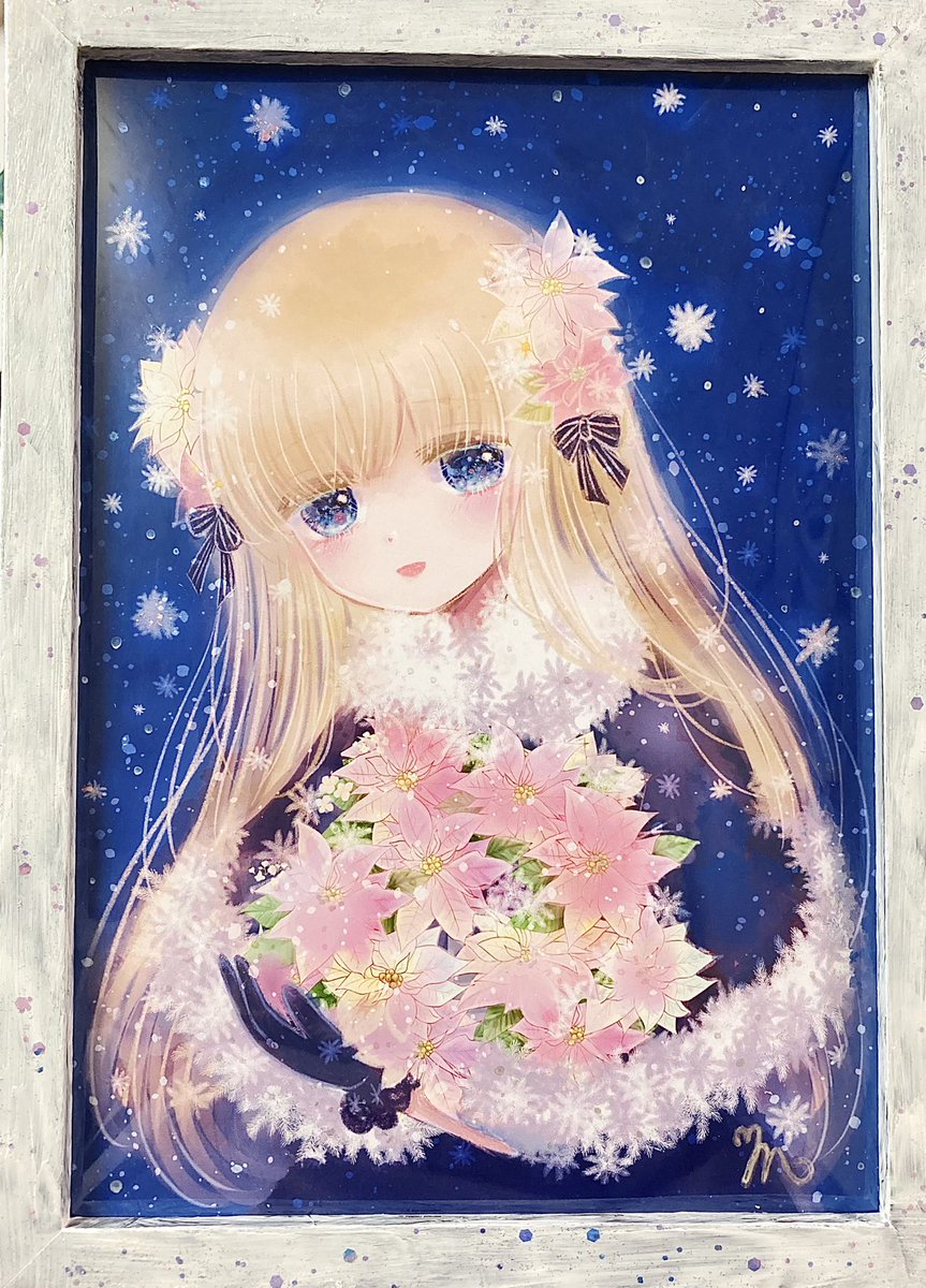 ご報告が遅くなりましたが、昨日から開催のガレリアオーソレミオ様(@osolemio2022 )主催のジョワイユノエル展にポインセチアと女の子の作品一点で参加しております✨ 通販も以下のURLにて対応していただいております🌸(=´∀`) よろしくお願い致します🎄 galleria-osolemio.stores.jp/items/6379f599… #イラスト