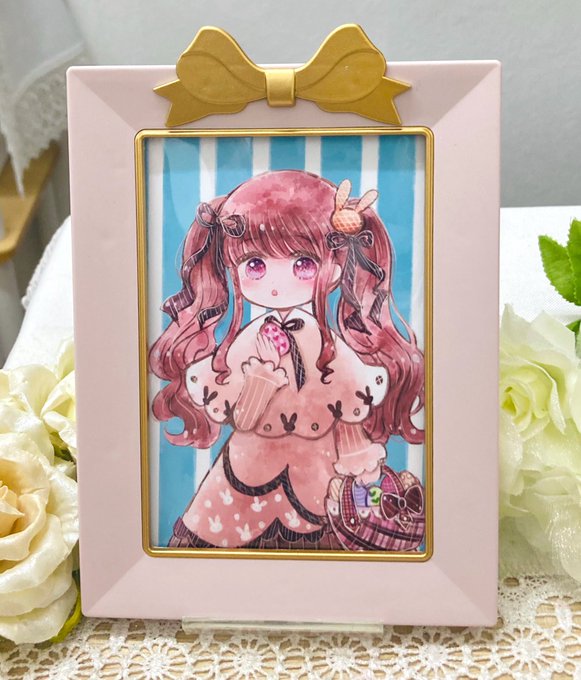 鎌倉MONA(@kamakuramona )で開催中のイースター展に作品一点で参加中です🌸🐰 ウサギみたいな女の子とイースターエッグを描きました。印刷後に角度を変えるとキラキラ光る外国の絵の具で加筆しています✨ #絵描きさんとつながりたい #イラスト好きと繋がりたい
