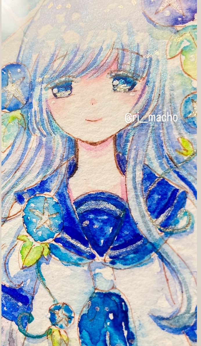 ご連絡が遅くなりましたが鎌倉MONA(@kamakuramona )で開催中の【Flower festival展】にセーラー服の女の子の作品一点で参加中です🌸透明水彩&角度を変えるとキラキラ光る外国の絵の具を使って制作しました✨是非見ていただけると嬉しいです☺️ #絵描きさんと繋がりたい #イラスト