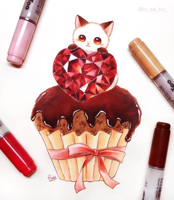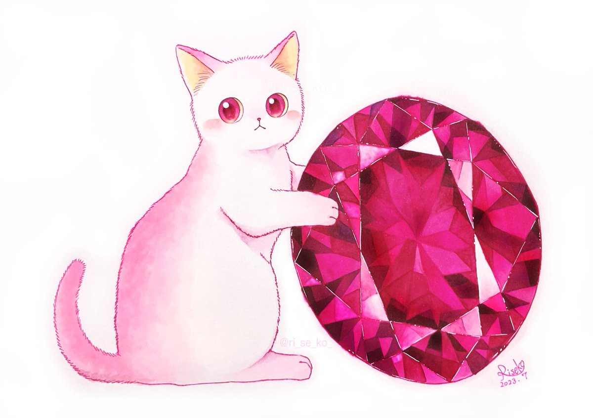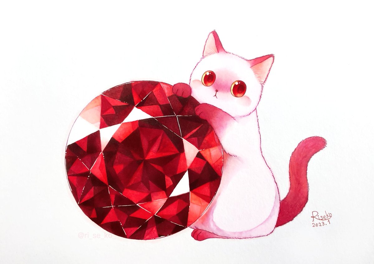 『猫と誕生石💎』 7月 ルビー #コピック #アナログイラスト