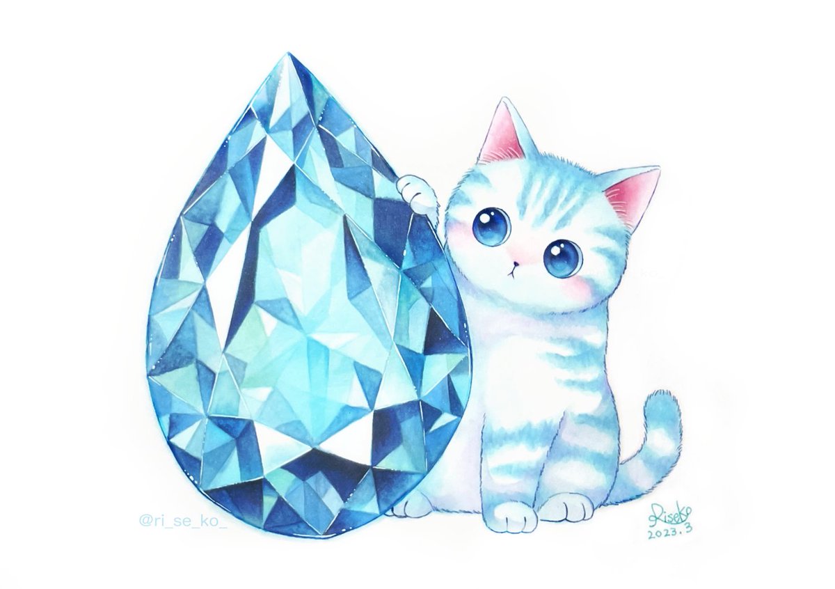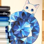 『猫と誕生石💎』 4月 ダイヤモンド #コピック #アナログイラスト