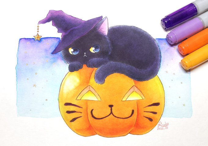 7 40 『ハロウィン猫🎃』 #ハロウィンイラスト #ハロウィンイラスト展示会2022 #コピック 22/10/31 19:03