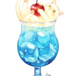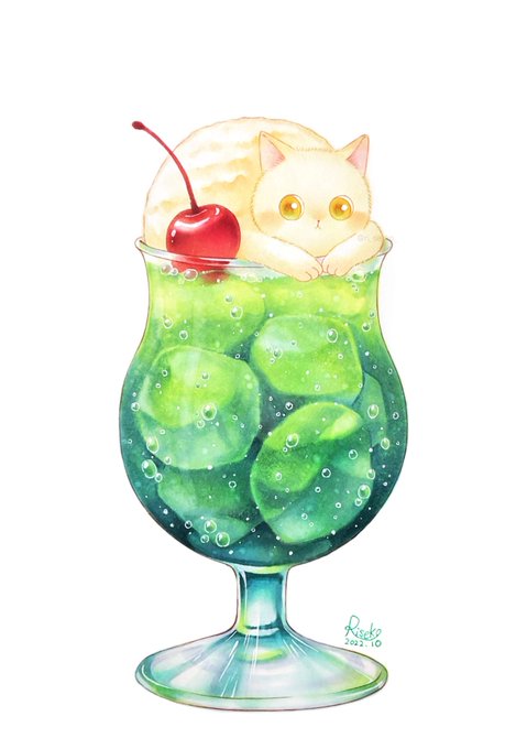 8 47 『クリーム猫ソーダ』 メロン🍈&ソーダ🥤 #コピック #アナログイラスト 22/11/11 19:31