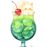 『クリーム猫ソーダ』 メロン🍈&ソーダ🥤 #コピック #アナログイラスト