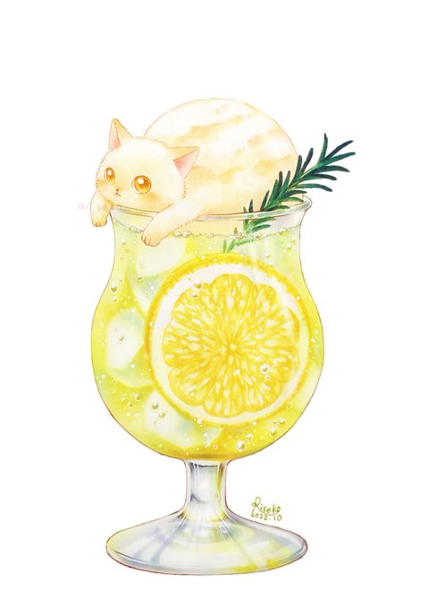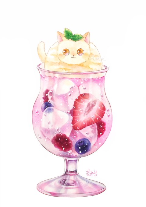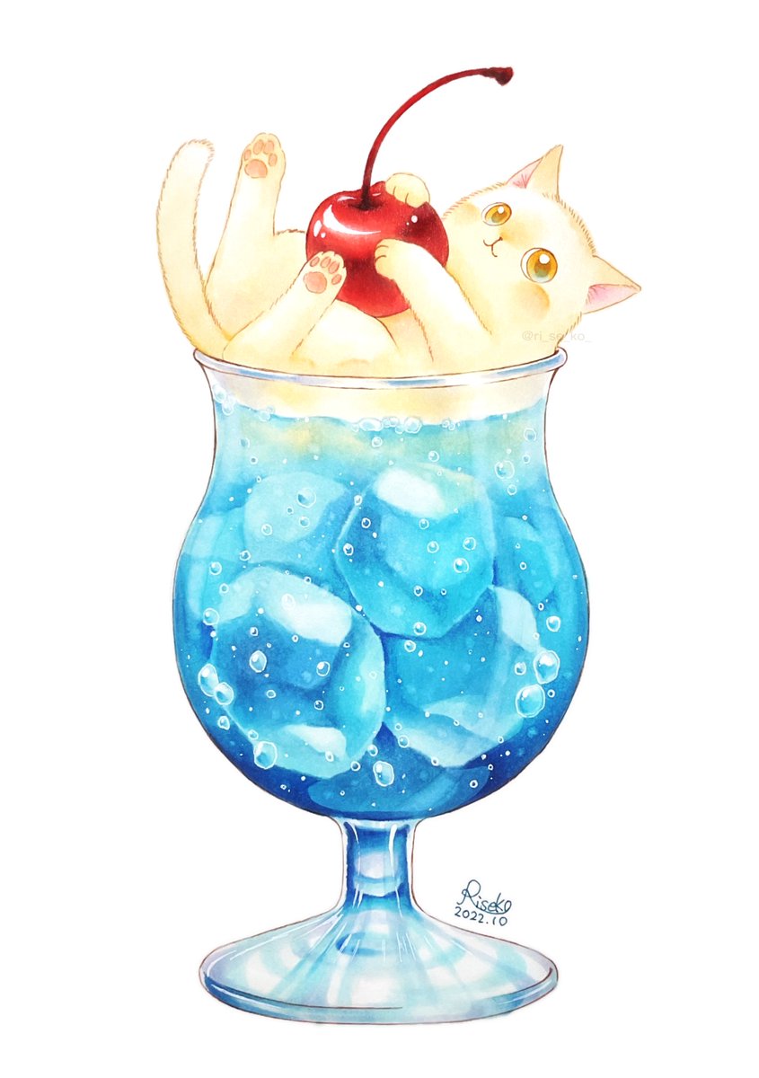 12 103 『クリーム猫ソーダ』 ベリー🍓&レモン🍋 #コピック #アナログイラスト 22/11/11 19:32