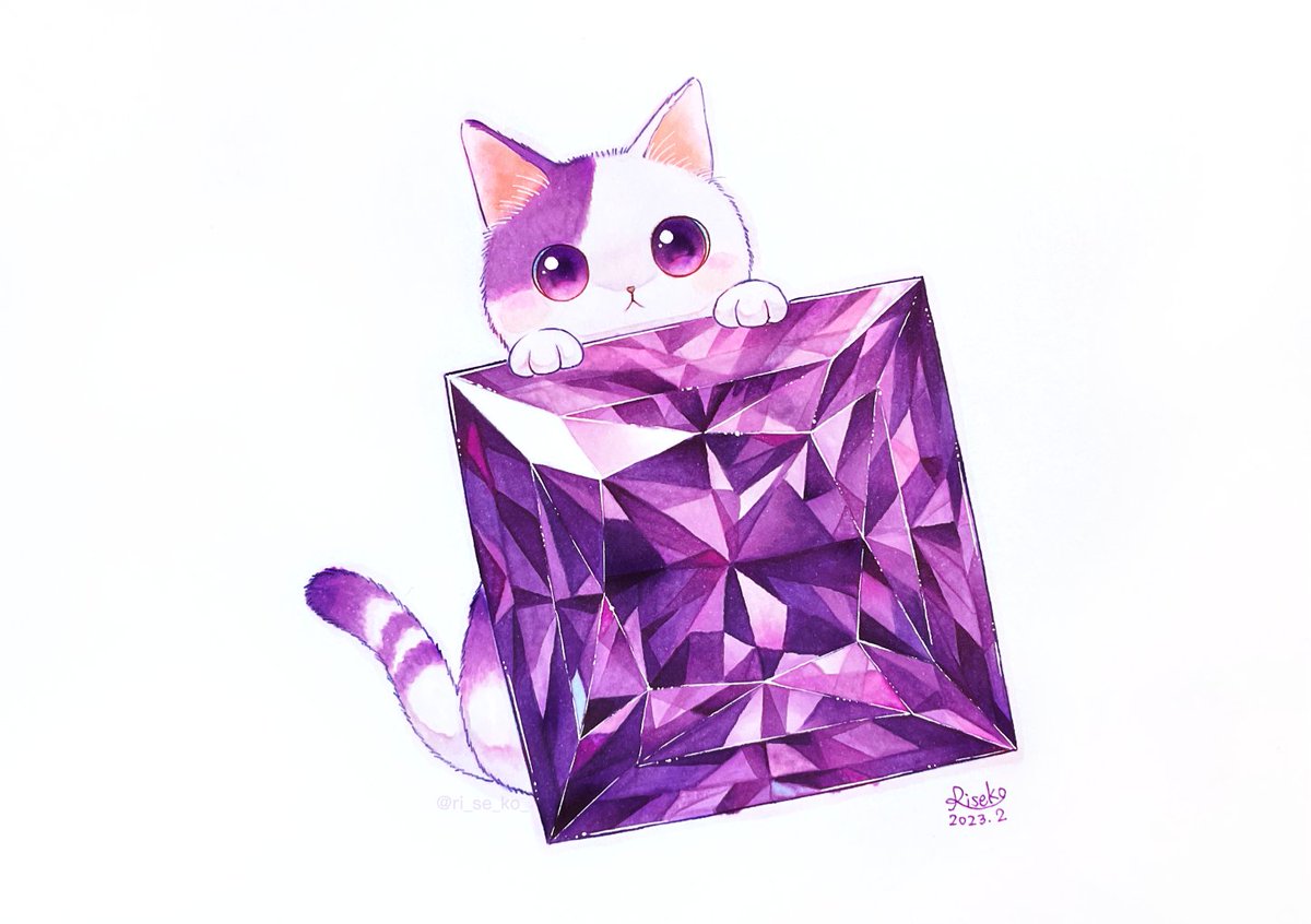 『猫と誕生石💎』 2月 アメシスト #コピック #アナログイラスト