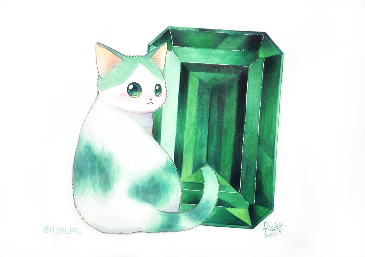 『猫と誕生石💎』 5月 エメラルド #コピック #アナログイラスト