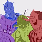 8 50 ③ 🐲「見て見て〜!蝉さん!」 🍑「うぉ!滅茶苦茶でけぇじゃねぇか!」 🐻「見た事のない蝉やなぁ!」 🐲「でしょでしょ〜!」 🐢「(……絶対会話に混ざりたくない)」 #特撮版深夜の真剣お絵描き60分一本勝負R 19/08/24 23:05