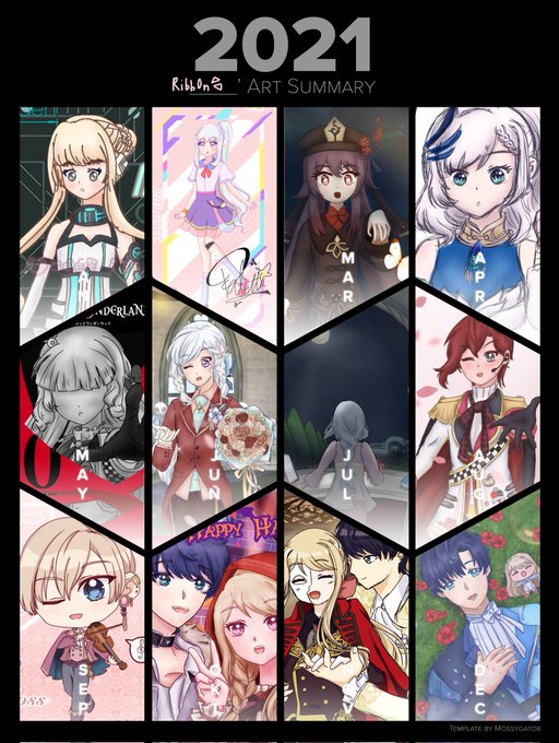 here's my #Artsummary2021 and I'm quite shook I made content every month even thou april was a unfinished colored sketch!! twitter.com/mossygator_/st…