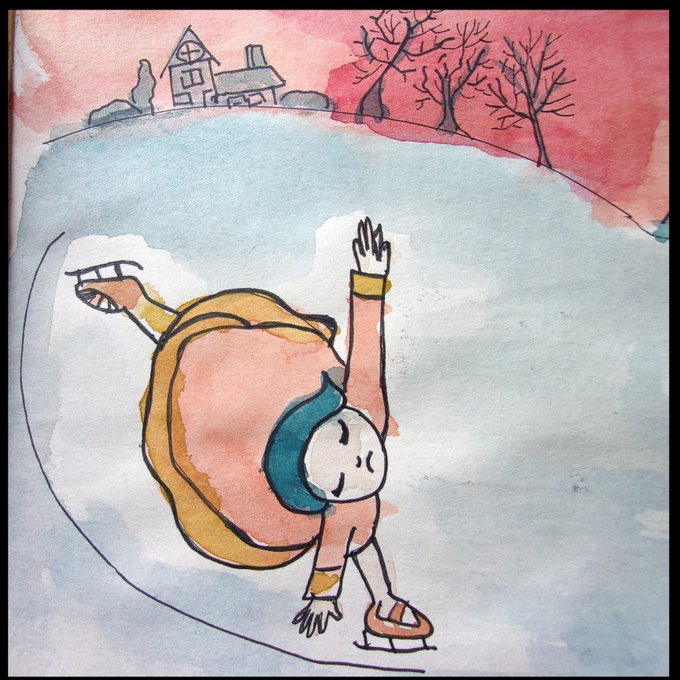 1 1 「スケートする冬の女の子」 もう、あまりに暑いから……。 #水彩画 #ペン #イラスト #アイススケート #冬 #女の子 #スケート滑る #スケッチブック 23/07/10 19:14