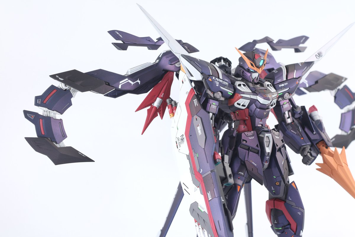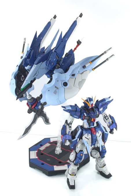 MG 1/100 ZGMF-X56S/ε-EX EX-ABYSS IMPULSE エクスアビスインパルス 完成しました。 静岡ホビーショー2023併せ企画 #SHSエクスインパルス併せ 参加作品。 エクスインパルスがアレンジの効いたインパルスということでアレンジが強めに効いたアビスガンダムをイメージして作成しました。