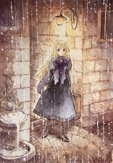 23 85 #わたしの世界へようこそ 喪服の少女が夜の雨の街を彷徨う、辿り着けない夢のような世界。 夜の古い街並のイメージは小説の「死都ブリュージュ」から受けた影響が大きいような。 23/08/04 00:21