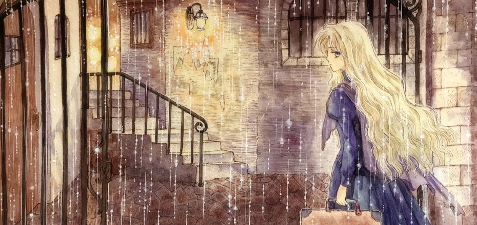 #わたしの世界へようこそ 喪服の少女が夜の雨の街を彷徨う、辿り着けない夢のような世界。 夜の古い街並のイメージは小説の「死都ブリュージュ」から受けた影響が大きいような。