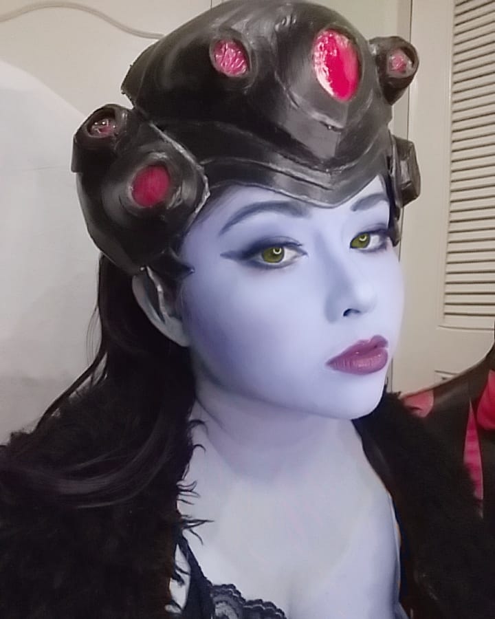 Broke out the ring light and tweaked the color I mixed for the face paint. The application needs more practice as well as the make up itself. I'm not sure which I like better though! #playoverwatch #overwatchcosplay #widowmaker #widowmakercosplay #cosplay #costest #costrial