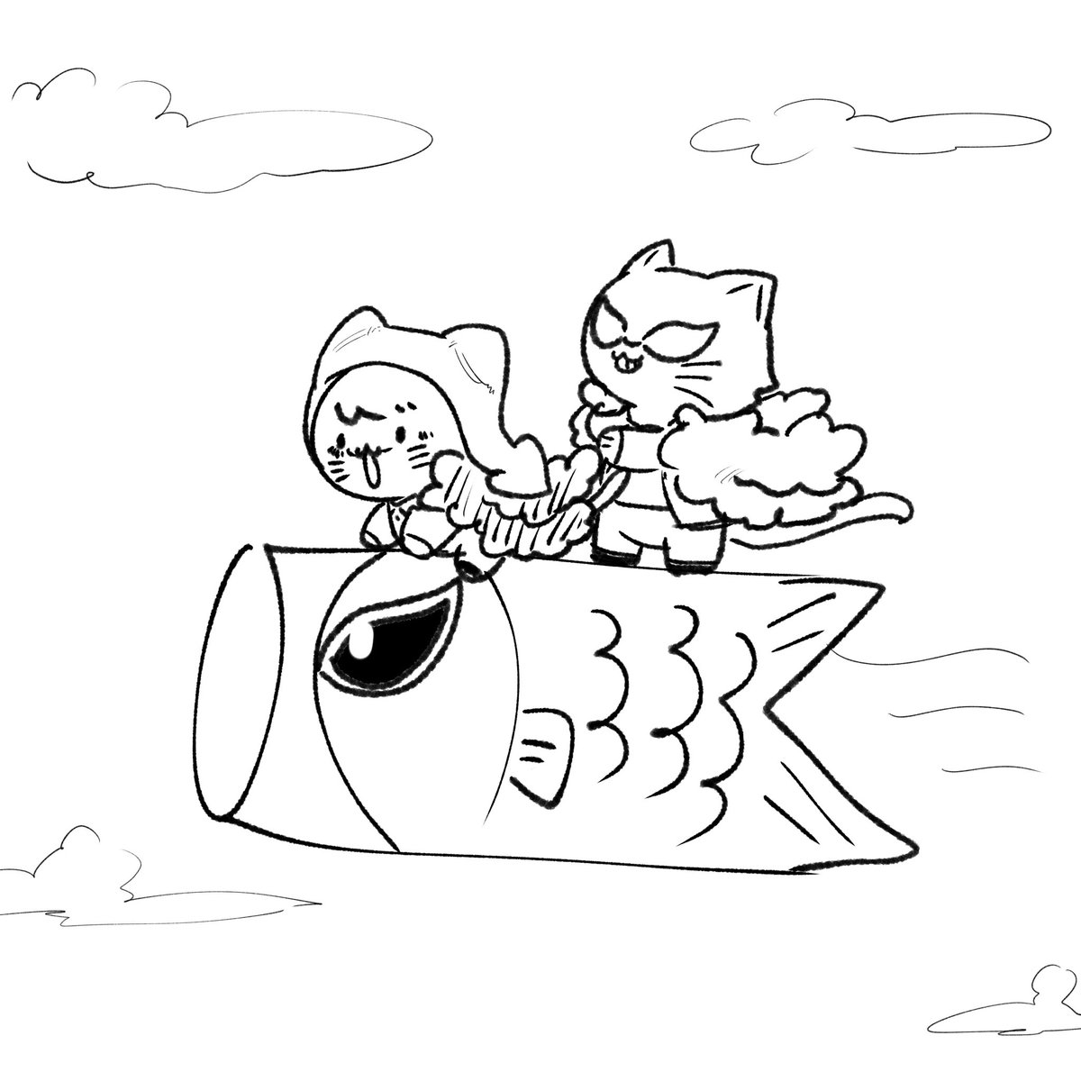 年内に終わらんとか言ったけど完成しましたわーい🙌 描き納め24にゃん、ロ君ver.