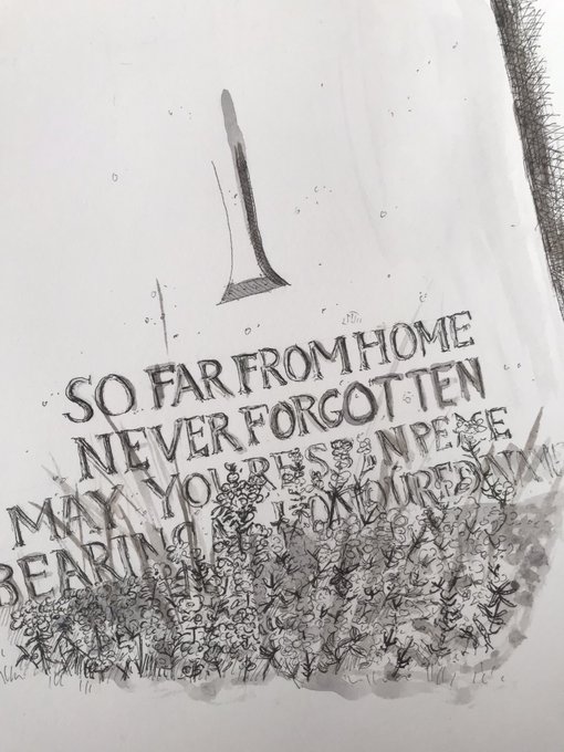 #inktober2022 12)Forgot. Actually the opposite to forgot: the headstone of Private Alan Mather. Listed as Missing in Action in June 1917 and found again by archaeologists in 2008 being identified in 2010. They made it clear they did not forget.