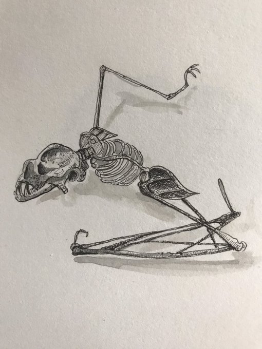 #inktober2022 3) Bat. One of my ecology colleagues showed me this skeleton of a greater horseshoe bat. So delicate. I think it looked like the remains of a little imp!