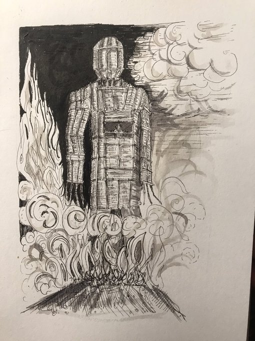#inktober2022 5) Flame - sorry couldn’t resist a good wicker man scene. Replicated every year at @butserfarm but not for the faint hearted. Or indeed policemen with flying boats! SING CUCKOO!