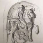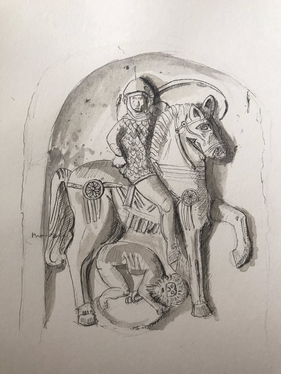 #inktober2022 8 ) Match. The 1st C tombstone of Roman cavalryman Longinus was found in Colchester in 1928. Minus his head - a gesture from the Boudiccan uprising? Further excavations 70 years later found more sculpture including a face with a helmet - & this was a complete Match!