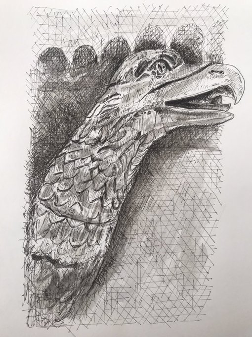 #inktober2022 11) Eagle. There are lots of these in Winchester Cathedral - carved on tombs and depicted on tiles. At a pinch you could also include the best of peregrines… this is, however, the wooden lectern