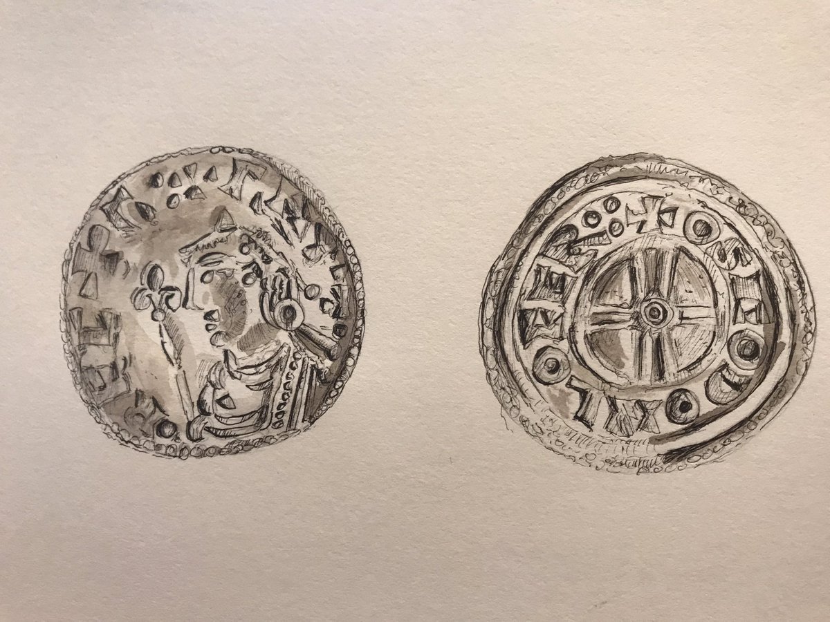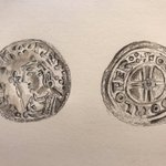 #inktober2022 26)ego. A coin of king Cnut minted in York. Most are familiar with the apocryphal tale of Cnut demanding the waves turn back (hubris and ego) - hes buried in a chest in Winchester Cathedral & the coin was minted by the first ‘Osgod’ I can find. How’s that for ego!
