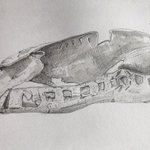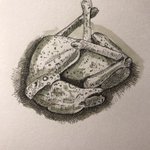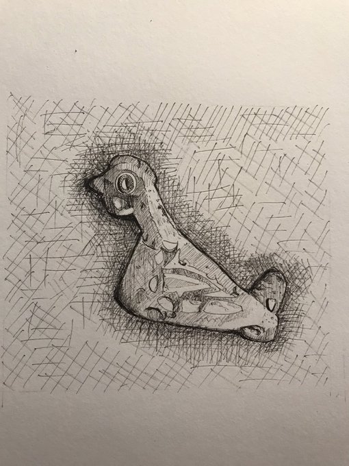 #inktober2022 16) Fowl. A Roman ‘sitting chicken brooch’ in the city Museum in Winchester. I am guessing it would once have had enamel decoration.