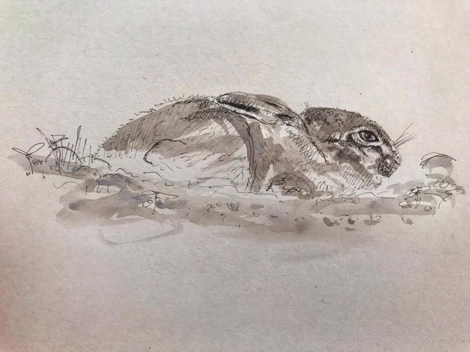 #inktober2022 18) scrape. An animal that doesn’t insist on living IN my monuments on the Plain - a hare. Instead it scrapes the ground to make a small indentation called a ‘form’. These are wondrous creatures small wonder they are so often depicted in art (see @HannahWillowArt !)