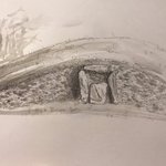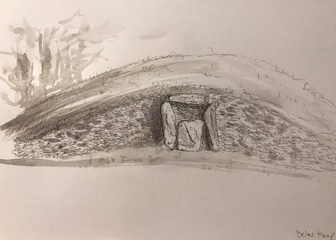 #inktober2022 20) Bluff. The ‘false’ entrance to the magnificent Belas Knap longbarrow. Cotswold Severn tombs are gorgeous things and this is a cracker. Real vaults to the side and a bluff at the northern end!