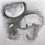 #inktober2022 27) Snack. I always annoyed going to Gough’s Cave, Cheddar as a kid. And recent research suggests cannibalism of bones from that rise - perhaps even so far as using skull caps as drinking vessel! Charming (worst snack ever). newatlas.com/science/britai…