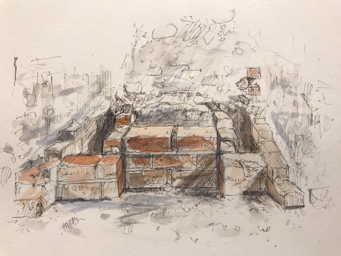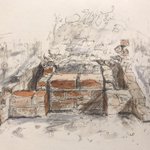 #inktober2022 28) Camping. In the 18th century thousands of Hessian mercenaries camped in Winchester. Some in tents & some in holes cut down into the chalk which even had brick chimneys like this one! We managed to join @PCAarchaeology & @OctaviusImp to dig one - Ex Sleepy Hollow