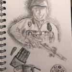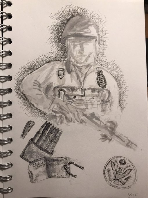 #inktober2022 30) gear. All the best left behind in Aldbourne by paratroopers of the 101st airborne. Bullets, chargers, spoons, buttons, hooks, grenades & a parachute handle, DDay clicker and the ID tags including that of Carl Fenstermaker- one of the famous #bandofbrothers