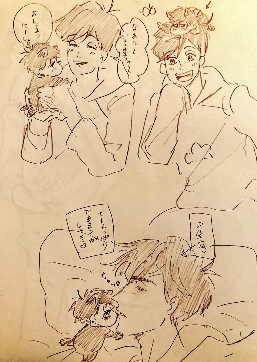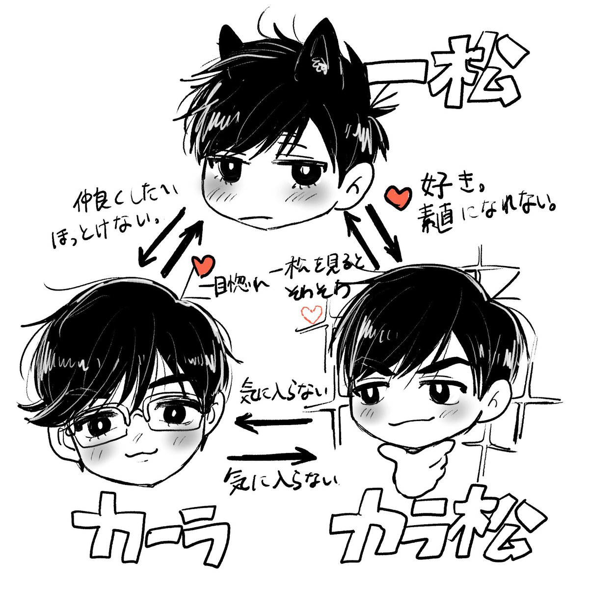 #フォロワーさんの推しを描きたい とりあえず枠内の数は完成です😆 リクエストありがとうございました(*^^*) 一松くんがいっぱいと、シロモちゃん描きました(*´`)