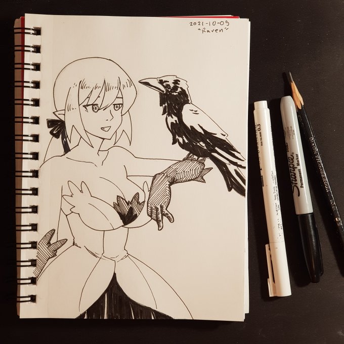 Day 5 of #inktober2021 - Raven I did some mistakes here and there but I'm overall happy with it. #inktober #キスショット